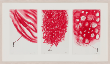 Tři limitované edice japonských dřevorytů od Chiharu Shiota, tištěné na speciálním Washi papíru vyrobeném mistrem tohoto řemesla Ichibei Iwano. Tisky z edice Connected to the Universe nabízíme exkluzivně v rámci nové výstavy Chiharu Shiota: Neklidná duše v Kunsthalle Praha. Dřevoryty navazují na autorčiny velkoplošné instalace z červených nití, propojují vesmír v nás i kolem nás pomocí červených vln, čar a kruhů.
