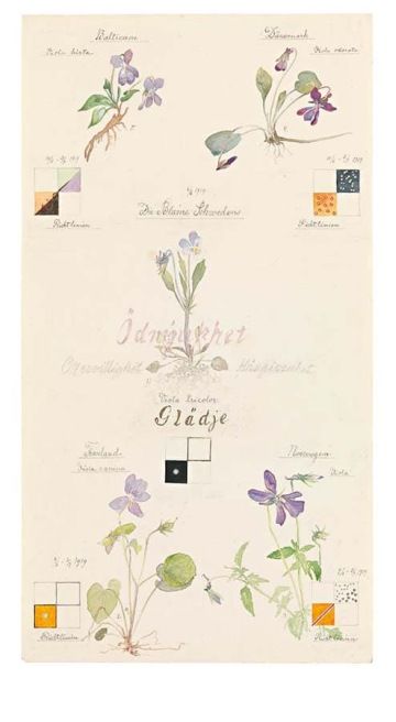 Dnes jedna z nejoceňovanějších švédských umělkyň Hilma af Klint (1862-1944) stála dlouhou dobu v ústraní svých slavnějších kolegů jako byli Piet Mondrian či Vasil Kandinsky. Narozená ve Stockholmu studovala Royal Academy of Fine Arts a záhy si vybudovala dobré jméno svými tradičně pojatými krajinomalbami, portréty či botanickými kresbami. Mnohem více si však cenila své nefigurativní tvorby, která však příliš neodpovídala dobovým konvencím. V této své tvorbě vycházela ze spiritualismu a dávno před nástupem surrealismu praktikovala metody jako automatické psaní či kreslení. Rozsáhlý cyklus nazvaný Malby pro chrám, který tvořila v letech 1907 až 1915 představuje soubor 193 abstraktních prací, které vznikly ještě dříve než nefigurativní malby Františka Kupky či Vasila Kandinského. Mezi lety 1919 a 1920 vytvořila během svého pobytu na švédském ostrově sešit Květiny, mechy a lišejníky, ve kterém zkoumala hmyz, stromy, drobné ptactvo, čtyři evangelisty a severské národy. Na přelomu let 2018 až 2019 vidělo výstavu jejích prací nazvanou Paintings for the Future v Guggenheimově muzeu v New Yorku rekordních 600 000 návštěvníků.