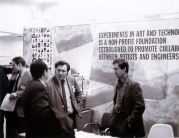 Společnost Experiments in Art and Technology (E.A.T.) byla založena v roce 1966 inženýry Billym Klüverem a Fredem Waldhauerem a umělci Robertem Rauschenbergem a Robertem Whitmanem. Ještě dříve pomáhal Billy Klüver, který v té době pracoval pro Bell Laboratories, umělci Jeanu Tinguelymu se sestavením sebedestrukčního kinetického stroje, který existoval pouhých 27 minut v rámci akce nazvané Homage to New York, která se odehrála v roce 1960 v Muzeu moderního umění v New Yorku. V této době také požádal R. Rauschenberg Klüvera o pomoc s jeho vlastní připravovanou interaktivní instalací. Ustavení skupiny E.A.T. především souviselo s události 9 Evenings: Theatre and Engineering, která se odehrála v říjnu 1966 v New Yorku a participovalo na ní čtyřicet inženýrů společně s deseti umělci, kteří společně vytvářeli performance za použití nových technologií. Cílem organizace E.A.T. bylo umožnit efektivní spolupráci mezi umělci a inženýry a již do roku 1969 měla skupina více než dva tisíce členů umělců a podobný počet inženýrů. Skupina také organizovala mezioborové akce a projekty, při kterých umělci využívali nové technologie a předznamenala mnoho současných trendů v technologickém umění.