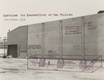 V jednom z vůbec neznámějších site-specific projektů s názvem Exposing the Foundation of the Museum americký umělec Chris Burden v roce 1986 doslova odhalil základy budovy Muzea současného umění (MOCA) v Los Angeles v Kalifornii. Instalace sestávala ze tří příkopů vyhloubených vedle vnější zdi muzea, přičemž návštěvníci měli možnost sestoupit po dřevěných schodech do výkopu, kde si mohli prohlédnout betonové základy budovy. Odkrývání základů během tohoto projektu lze samozřejmě číst i přeneseně jako odhalování pravidel a mocenských struktur muzejních institucí. Tento metaforický význam Burdenovo dílo řadí mezi zásadní práce umělecké tendence tzv. institucionální kritiky umění, do které můžeme zařadit také některé práce umělecké dvojice Elmgreen & Dragset (autorů výstavy READ). Význam instalace Exposing the Foundation of the Museum dokazuje také skutečnost, že byla znovu po 22 letech v MOCA obnovena a návštěvníci tak měli opět možnost ponořit se do útrob muzejní instituce.