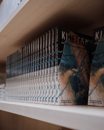 Ever since electricity became ubiquitous artists have been fascinated by the manifold possibilities to create works with it. The catalogue Kinetismus: 100 Years of Electricity in Art, which accompanies the opening exhibition of Kunsthalle Praha, explores how electricity has transformed artistic practice from 1920 to the present day, including cinematography, sound, kinetic and mechanical sculptures, computer-based art and immersive installations. A historical perspective emphasizes the fact that electricity, with its various usages—from artificial light to computing—has become a defining element of our societies.