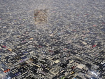 Gregor Hildebrandt’s largest exhibition to date, covering more than 20 years of his practice, inaugurates a programme of solo exhibitions by major living artists presented at Kunsthalle Praha. Working mainly with analogue sound storage mediums, the German artist creates sculptures, installations, and paintings with materials such as compression moulded vinyl, audiotapes on canvas or cassette shells. Hildebrandt’s work makes formal references to Minimalism and Abstract expressionism, it is also nourished by a multitude of literary, cinematographic, musical and architectural inspirations. These cultural sources trigger both collective and personal memories.