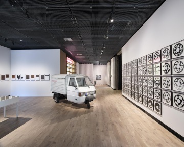 Hildebrandt conceives his exhibitions in the same way as he does his paintings: according to the technique of collage. Through this he creates enveloping environments in which objects and architectural elements merge, as can be seen in Galleries 1 and 2, which hold large installations that alter their original spaces. Drawing the viewer into the artist’s idiosyncratic world, these installations are punctuated with numerous assemblages, paintings and sculptures—iconic, lesser known, new, or specially created for the exhibition.