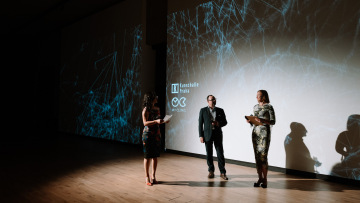 Thanks to a live-generated projection created in collaboration with Studio Lunchmeat, you can transform your event at Kunsthalle Praha into an unforgettable experience. The visual style, colour palette, and even the generated shapes can be customised to perfectly match your corporate identity (including the option to incorporate your logo) or the theme of a specific evening. This allows you to create a unique atmosphere for your guests — one that truly resonates with your brand.
