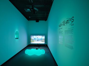 Výstava představuje digitální světy Alice Bucknell, které zkoumají vztah mezi lidmi, přírodou a technologiemi prostřednictvím herních prostředí.