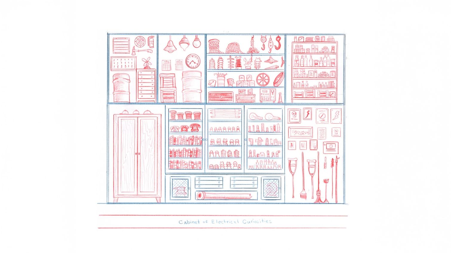 Speciální výběr předmětů opatřil texty v doprovodné publikaci Field Guide český znalec elektrotechniky Milan Guštar. Nechybí „zlodějky“, tedy elektrické rozbojky, indukční cívky tlumivky nebo proslulý časopis Zprávy Elektrických podniků obce pražské, jehož název inspiroval vznik městských legend o patronovi tramvajáků, autobusáků a elektrikářů – starém Zepopovi. „Mé kabinety často obsahují žerty, které odkazují k objektům ready-made a velice často se dopouštím exkluzivních odkazů k Marcelu Duchampovi, Manu Rayovi nebo jiným surrealistům, s nimiž se můj vztah k předmětům částečně překrývá. I toto dílo má i pro mě svá velikonoční vajíčka, například bezpočet skleněných izolátorů, které působí jako výsostně designové objekty hrající všemožnými barvami,“ dodává Dion.